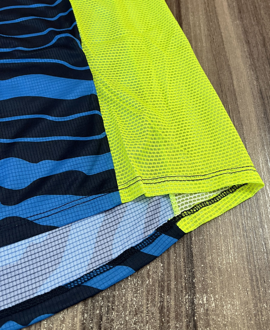 Os punhos e a gola da camisa de motocross possuem acabamento superior com painéis elásticos que favorecem o caimento junto ao corpo para o máximo em conforto.