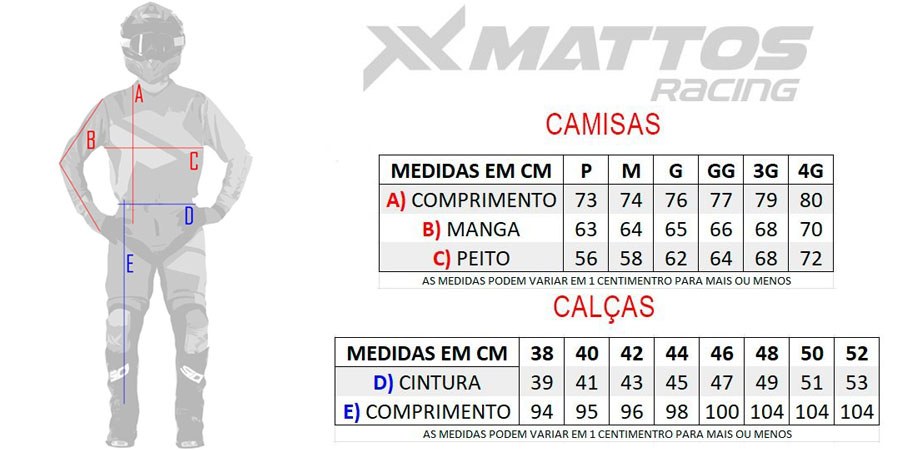 Confira as medidas do Conjunto Mattos Racing Multi: