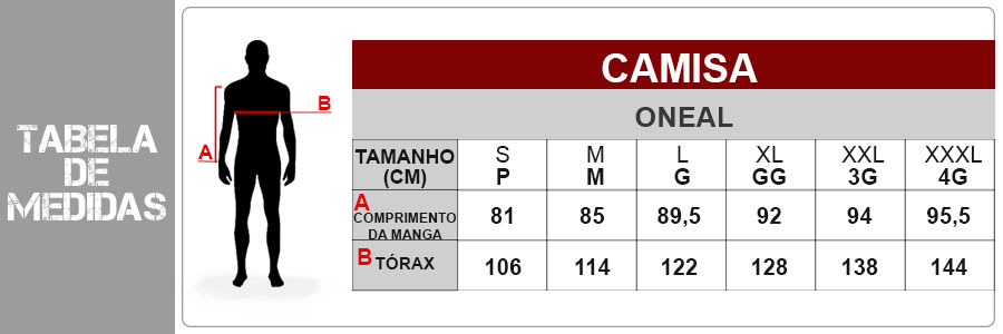 Confira as medidas da Camisa Oneal Shocker 2023: