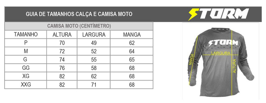Voltada para encarar as trilhas e pistas com um excelente custo x benefício, a Camisa motocross Storm First possui modelagem convencional (regular).