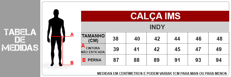 Calça para motocross IMS Indy, conta com fechamento em zíper e com botão de pressão na linha da cintura, além de trazer um tecido elástico, que permitem um excelente ajuste junto ao corpo do piloto, garantindo um ótimo conforto e um maior poder de personalização, ajustando-se de acordo com o gosto.