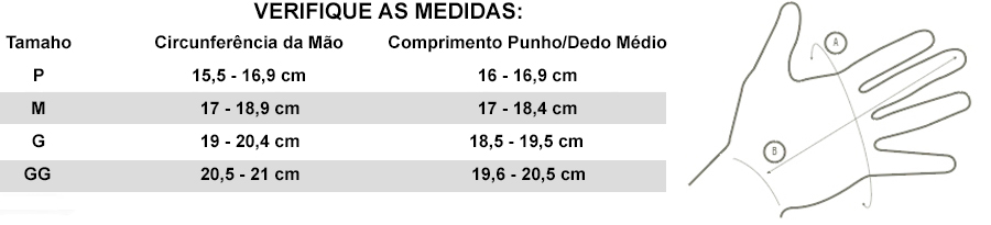 Se liga nas medidas da Luva Feminina Giro La DND: