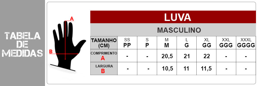 Qual a medida correta para a Luva Mattos Racing Atomic?