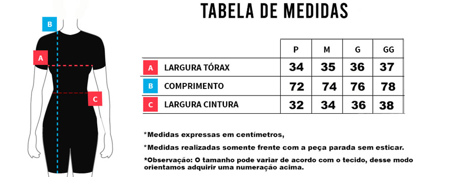Confira as medidas do Macaquinho Feminino Cabani Heart: