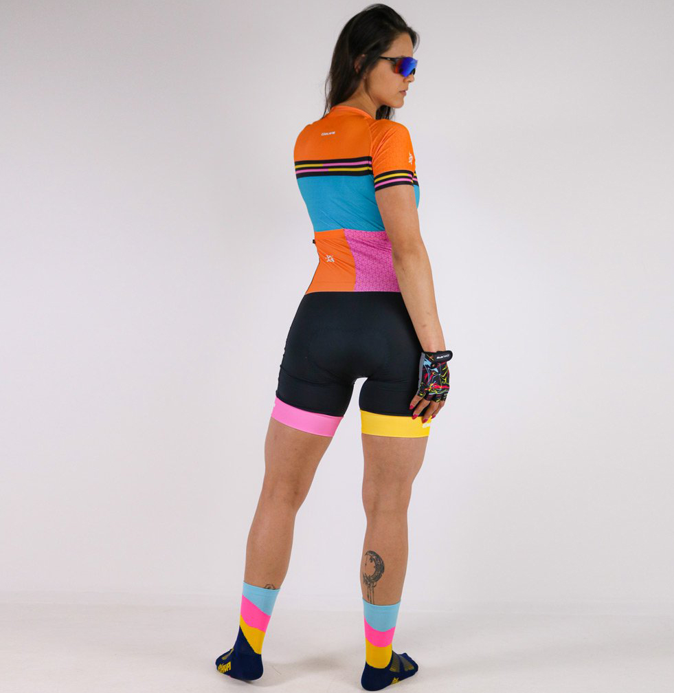 Desenvolvida para as ciclistas que procuram performance com conforto, conta com design slim fit com um encaixe preciso junto ao corpo.
