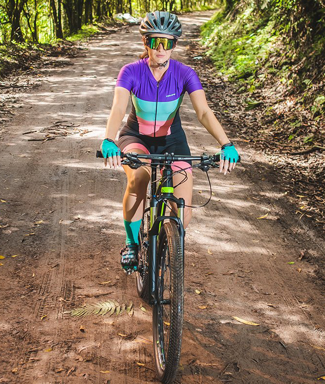 Desenvolvida para as ciclistas que procuram performance com conforto, conta com design slim fit com um encaixe preciso junto ao corpo.