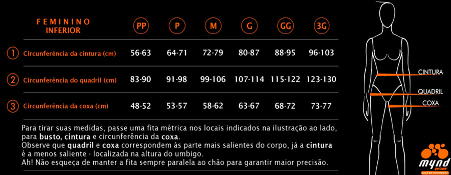Confira as medidas do Macaquinho Feminino Mynd Basic: