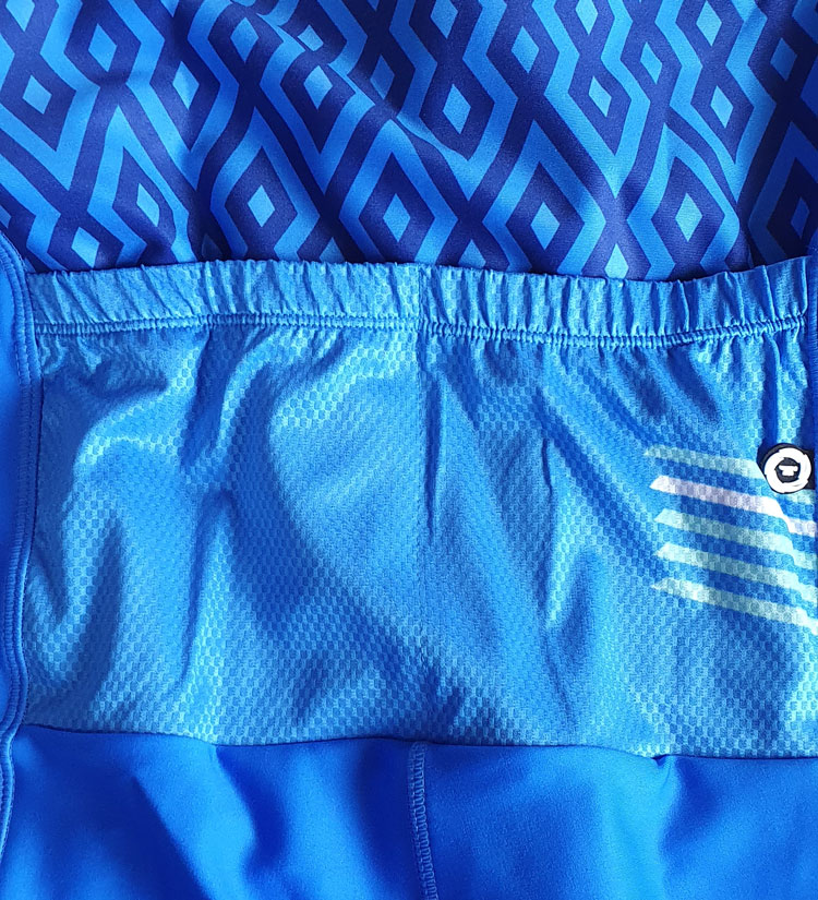 Macaquinho de ciclismo feminino TSW Sky conta com barras das pernas confeccionadas com fita elástica siliconada que oferece uma maior fixação junto ao corpo, mesmo nas maiores rotações e movimentações maiores sobre os pedais.
