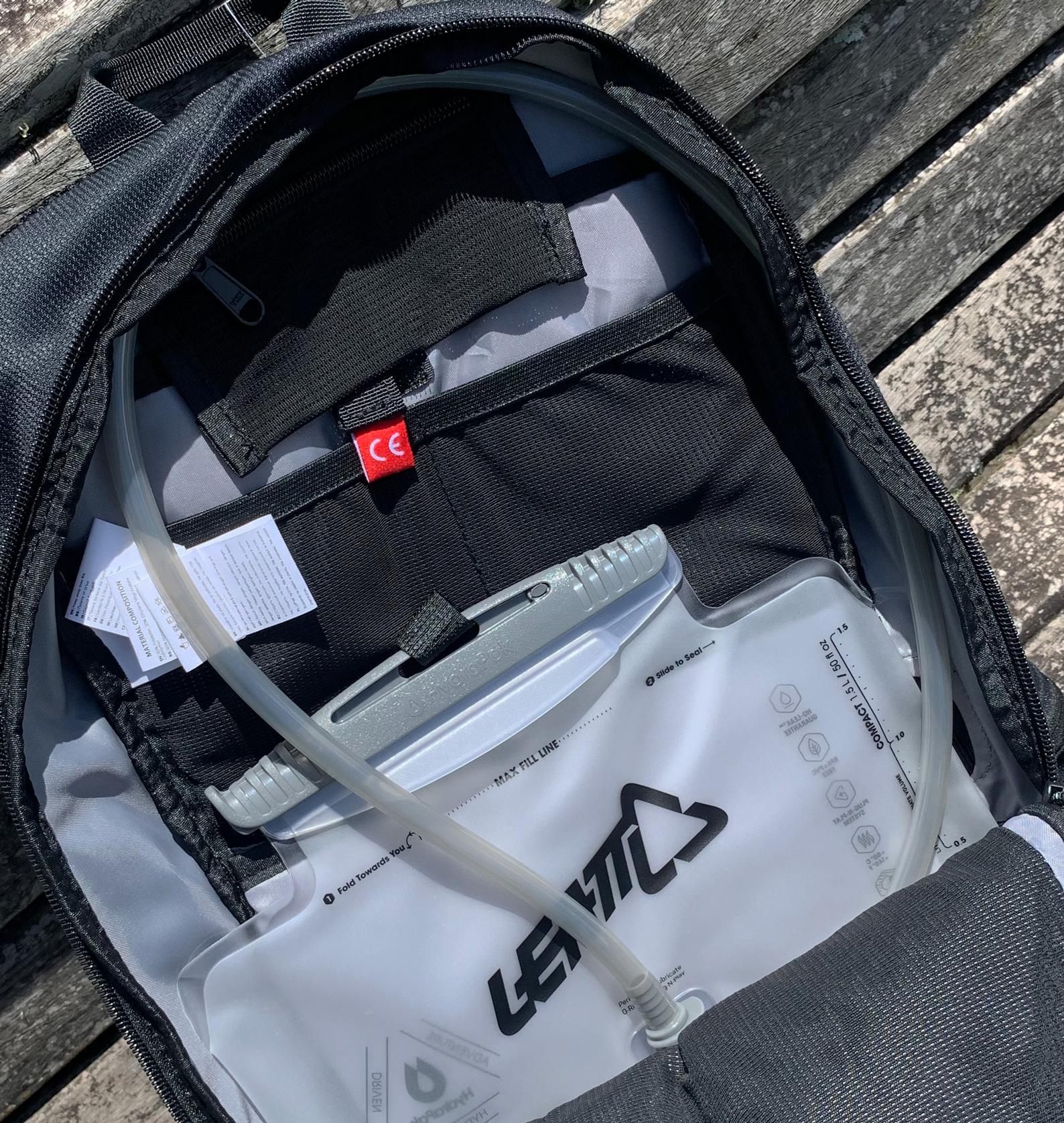 Cada embalagem da Mochila de Hidratação Leatt 1.5 Moto Lite contém: