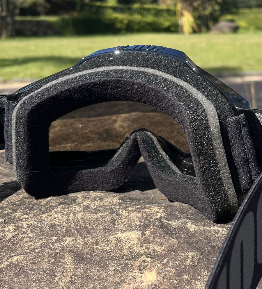 Óculos 100% Accuri 2 possui três espumas hipoalergênicas que geram uma maior maciez ao contato com a pele, ajudando a prevenir irritações e que objetos e sujeiras entrem em contato direto com o rosto.