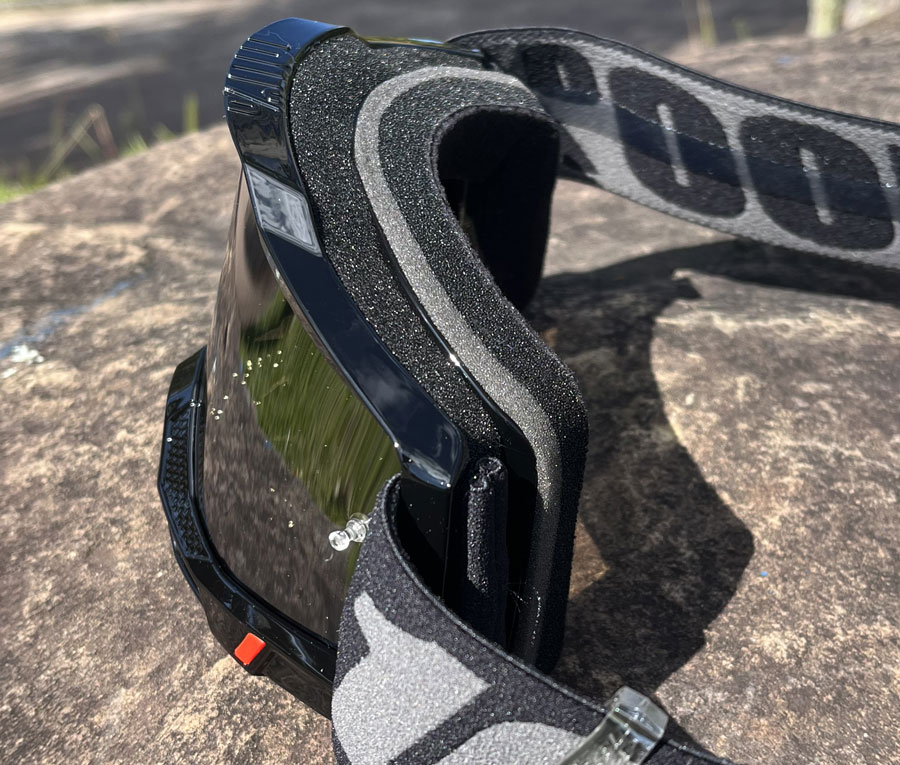 A tira mais larga do Óculos 100% Accuri 2, permite que o ajuste ao rosto e em qualquer modelo de capacete para motocross seja realizada sem problemas aliada à impressão interna em silicone que auxilia em uma maior fixação junto ao capacete de motocross, além de auxiliar a evitar desgastes e atritos, mantendo a durabilidade em alta para sua pilotagem.
