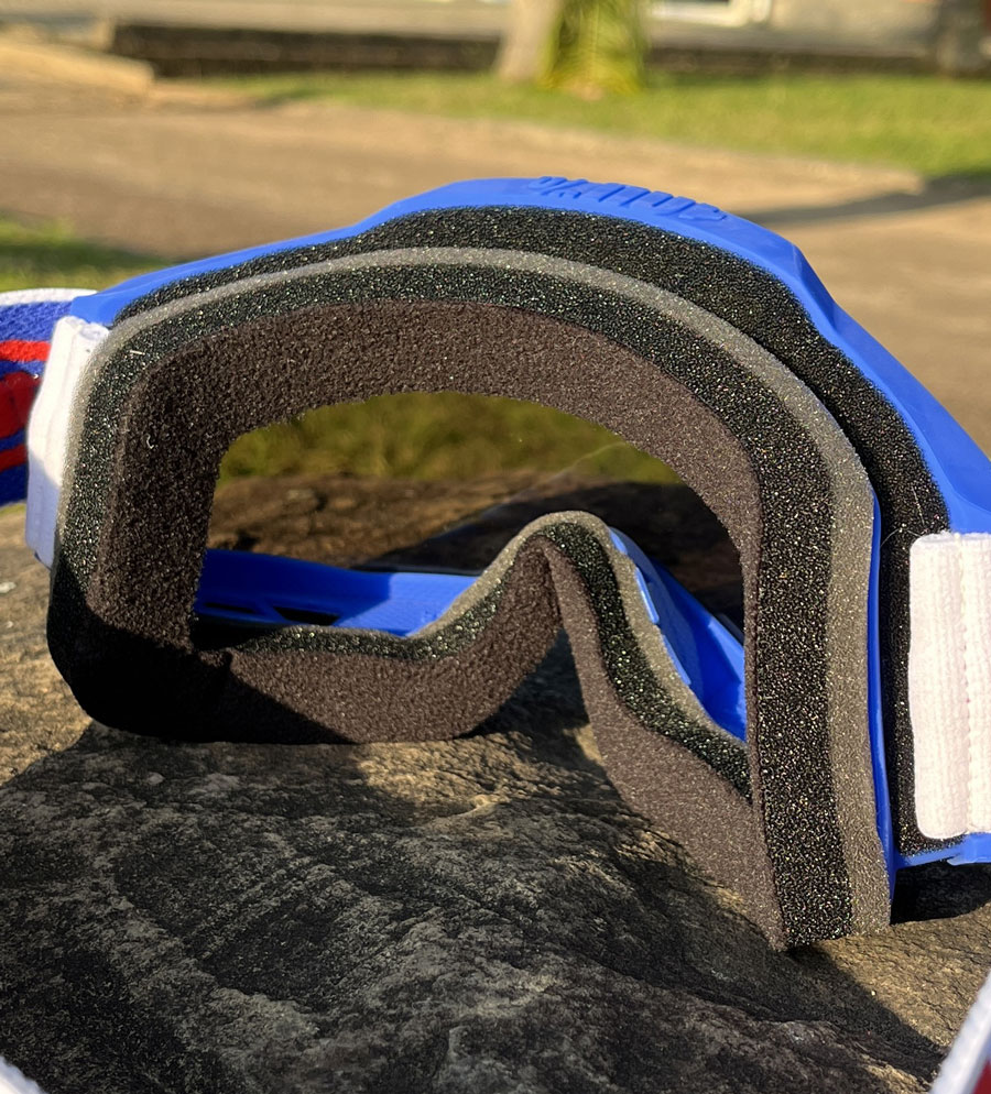 A tira mais larga do Óculos 100% Accuri 2, permite que o ajuste ao rosto e em qualquer modelo de capacete para motocross seja realizada sem problemas aliada à impressão interna em silicone que auxilia em uma maior fixação junto ao capacete de motocross, além de auxiliar a evitar desgastes e atritos, mantendo a durabilidade em alta para sua pilotagem.