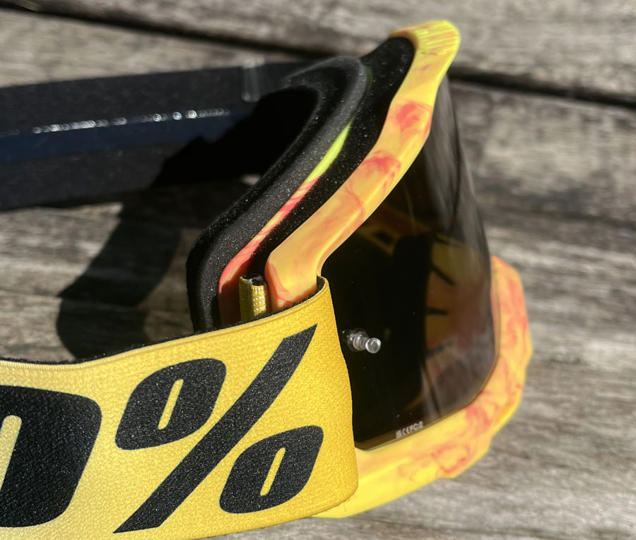 A estrutura da armação e o perfil das lentes desenvolvidas pela 100% utilizam o mesmo tamanho de lente e perfil de corte para toda a linha de óculos Strata 2 e Racecraft 2, permitindo que desta forma, alguns modelos e lentes sejam totalmente compatíveis para garantir uma alta capacidade de versatilidade, e com 9 pinos de encaixe para a lente, a fixação e a segurança são ainda maiores.