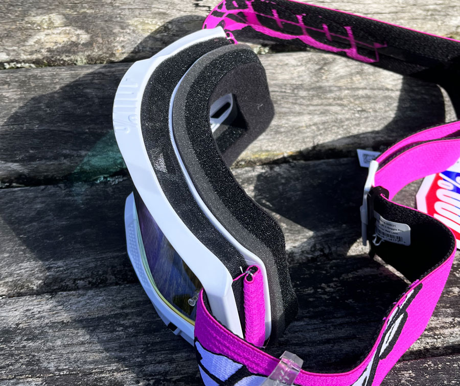 A tira mais larga do Óculos 100% Accuri 2, permite que o ajuste ao rosto e em qualquer modelo de capacete para motocross seja realizada sem problemas aliada à impressão interna em silicone que auxilia em uma maior fixação junto ao capacete de motocross, além de auxiliar a evitar desgastes e atritos, mantendo a durabilidade em alta para sua pilotagem.