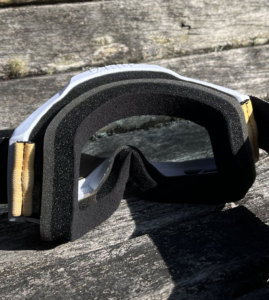 Óculos 100% Accuri 2 possui três espumas hipoalergênicas que geram uma maior maciez ao contato com a pele, ajudando a prevenir irritações e que objetos e sujeiras entrem em contato direto com o rosto.