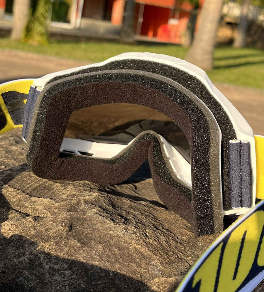 A tira mais larga do Óculos 100% Accuri 2, permite que o ajuste ao rosto e em qualquer modelo de capacete para motocross seja realizada sem problemas aliada à impressão interna em silicone que auxilia em uma maior fixação junto ao capacete de motocross, além de auxiliar a evitar desgastes e atritos, mantendo a durabilidade em alta para sua pilotagem.