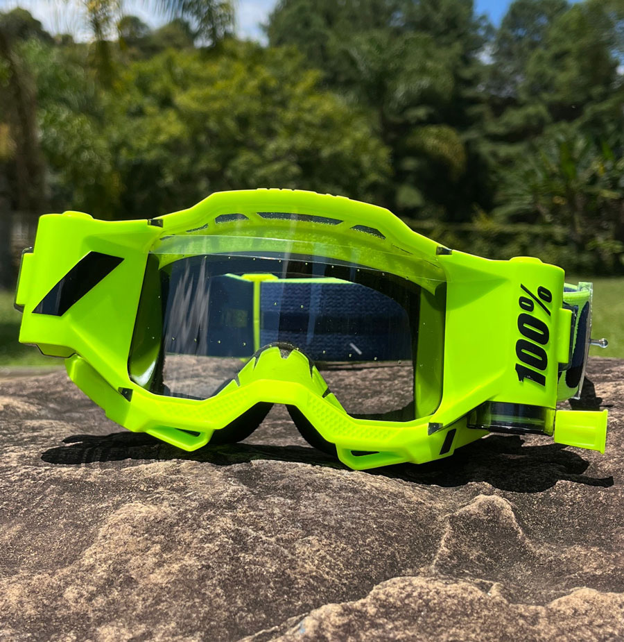 Desenvolvido para atender os pilotos das trilhas mais pesadas às pistas mais enlameadas, o óculos conta com sistema de Roll Off, que permite limpeza rápida da lente de forma simples e eficiente