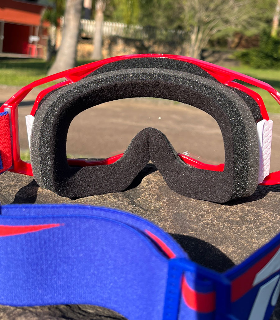 Óculos para motocross 100% Armatic possui camada tripla de espumas tratadas em sua armação, que garantem uma compressão ideal para sua pilotagem.