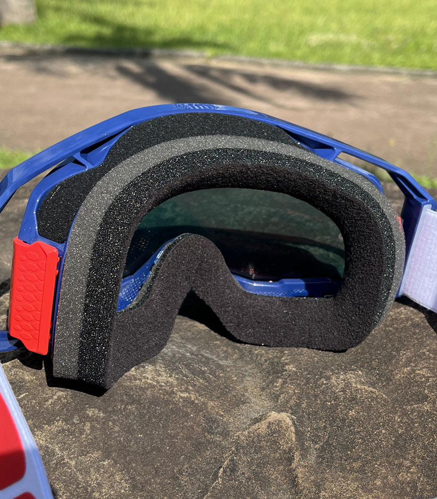 Óculos para motocross 100% Armatic possui camada tripla de espumas tratadas em sua armação, que garantem uma compressão ideal para sua pilotagem.