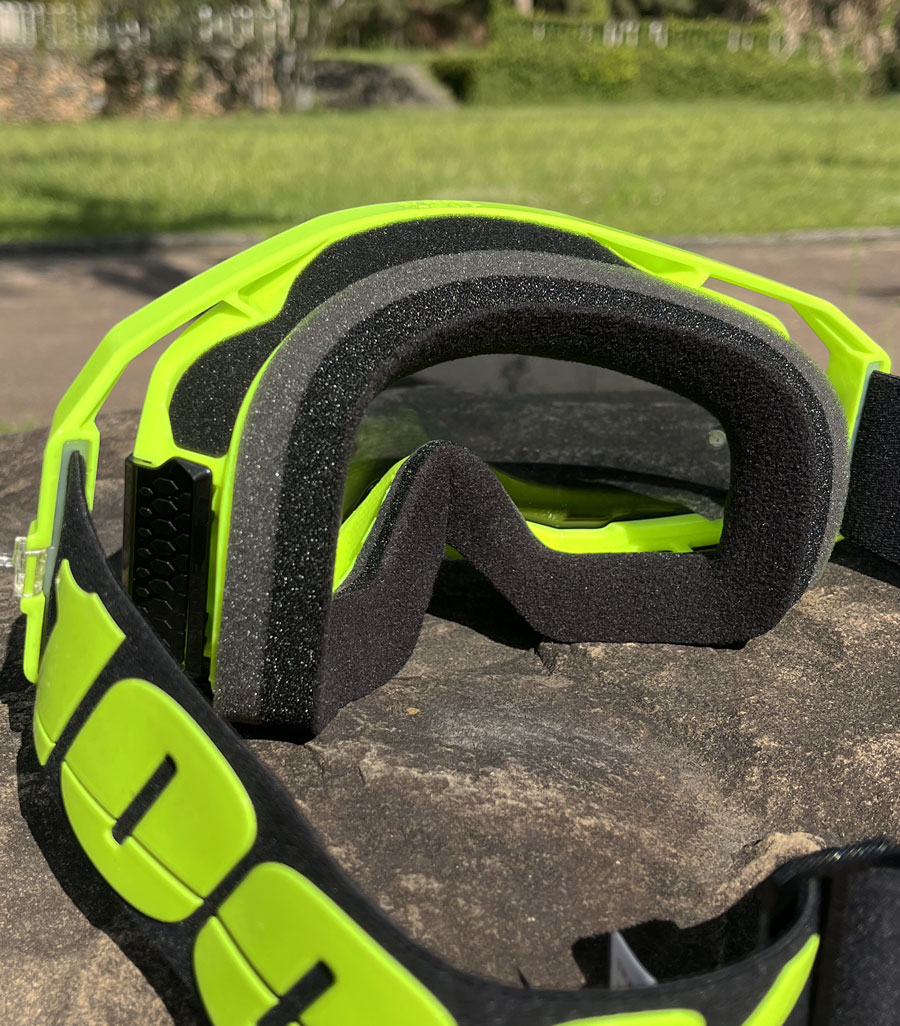 Óculos para motocross 100% Armatic possui camada tripla de espumas tratadas em sua armação, que garantem uma compressão ideal para sua pilotagem.