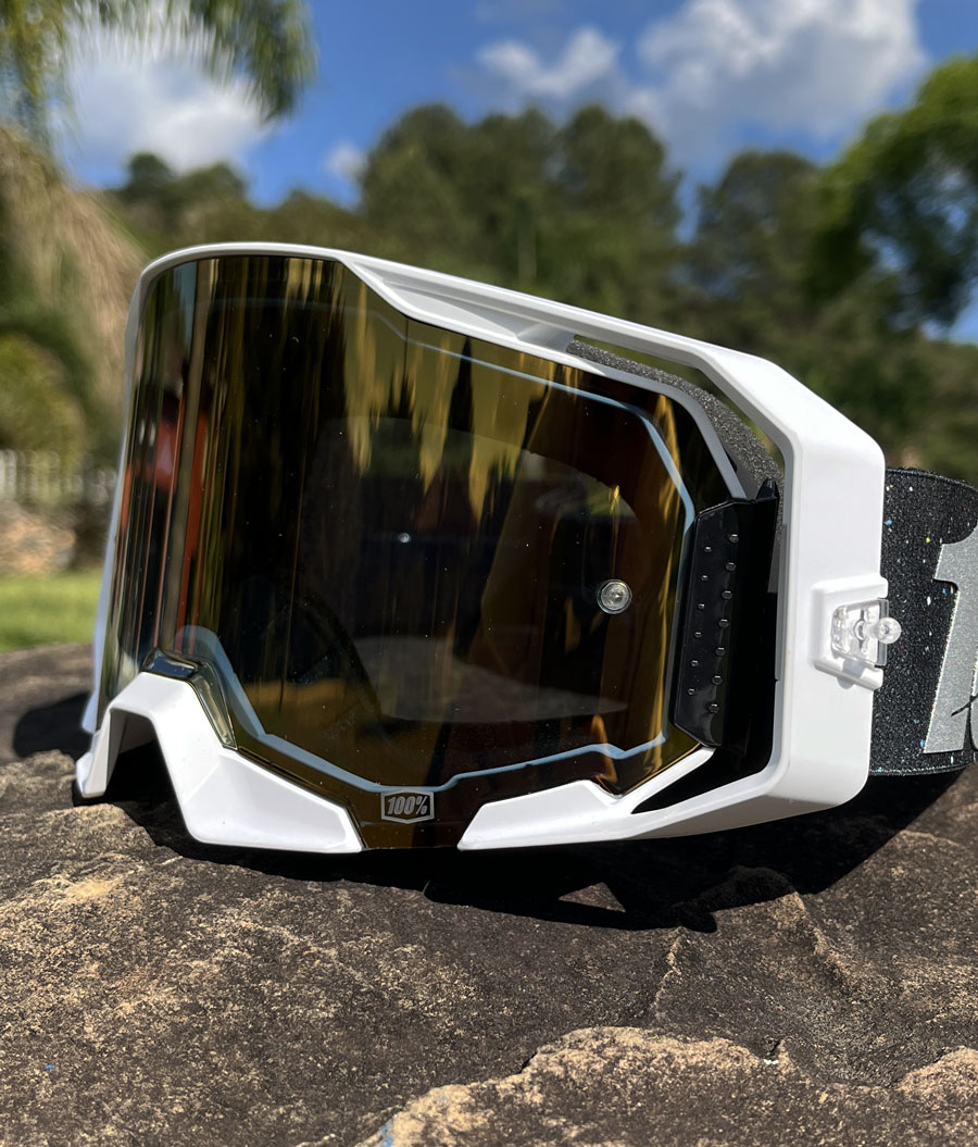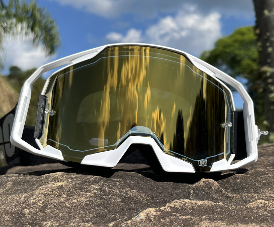 • 01 Óculos 100% Armatic Rapid Racer (Branco) com lente espelhada já instalada