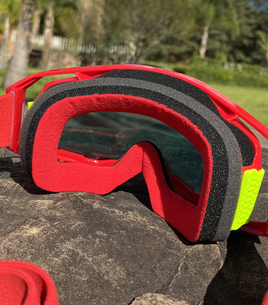 Óculos para motocross 100% Armatic possui camada tripla de espumas tratadas em sua armação, que garantem uma compressão ideal para sua pilotagem.