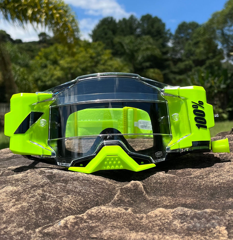 Desenvolvido para atender os pilotos das trilhas mais pesadas às pistas mais enlameadas, o óculos conta com sistema de Roll Off, que permite limpeza rápida da lente de forma simples e eficiente