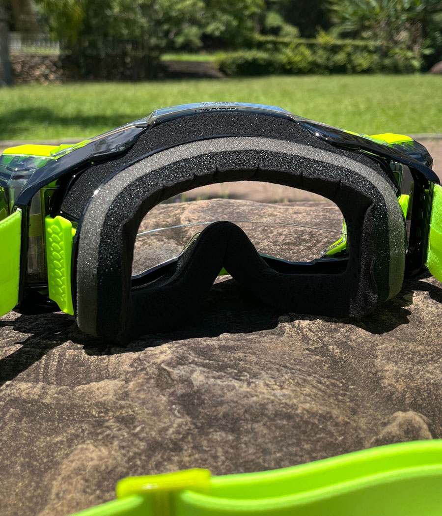 A qualidade elevada do Óculos 100% Armega Forecast supera todos os passos já criados em qualquer outro modelo de óculos de motocross. Com camada tripla de espumas tratadas em sua armação, a compressão é ideal para a pilotagem, além de um sistema totalmente único e exclusivo no fechamento da lente junto à armação - em 6 pontos e com trava nas laterais, facilitando a troca de lentes e garantindo praticidade e segurança na hora de pilotar e na limpeza da lente.