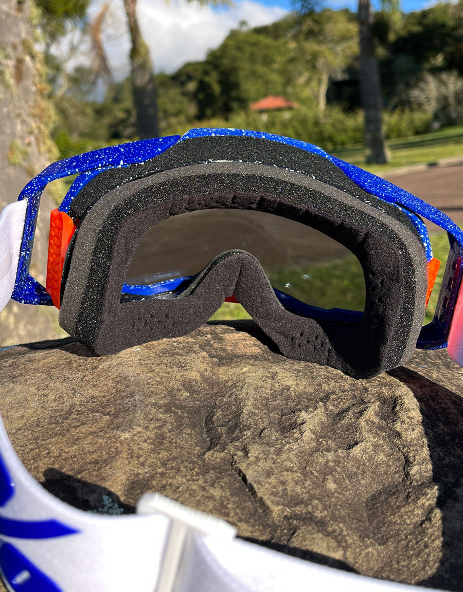 Com camada tripla de espumas tratadas em sua armação, a compressão é ideal para a pilotagem, além de um sistema totalmente único e exclusivo no fechamento da lente junto à armação - em 6 pontos e com trava nas laterais, facilitando a troca de lentes e garantindo praticidade e segurança na hora de pilotar e na limpeza da lente.