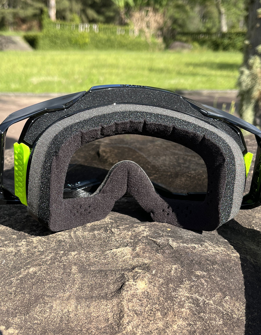Com camada tripla de espumas tratadas em sua armação, a compressão é ideal para a pilotagem, além de um sistema totalmente único e exclusivo no fechamento da lente junto à armação - em 6 pontos e com trava nas laterais, facilitando a troca de lentes e garantindo praticidade e segurança na hora de pilotar e na limpeza da lente.
