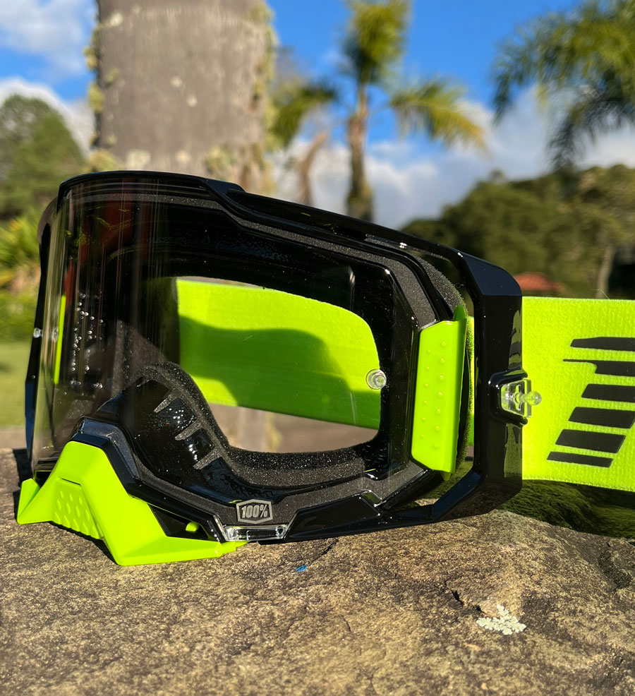 Pilote com mais proteção com o Óculos 100% Armega Neon Yellow Lente Transparente.