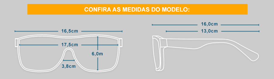 • Lente única em policarbonato - maior e mais resistente, não causam divergências e são fáceis de serem repostas ou substituídas por outras cores