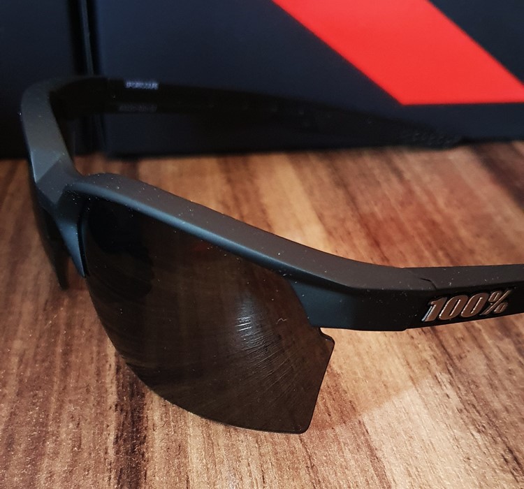 As lentes do óculos para ciclismo 100% Sportcoupe possui tratamento com filtro bloqueador de raios ultravioleta do tipo A, B e C, além de redução da incidência de luz azul.