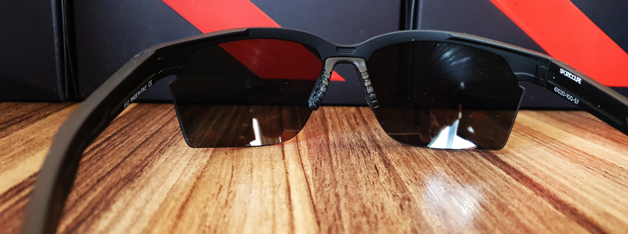 A ponta das hastes e os nosepads (narizeiras) do óculos para pedalar 100% Sportcoupe ainda conta com tecnologia Ultra-Grip®, capazes de manter a fixação mais elevada junto ao rosto, mesmo sobre as cintas jugulares do capacete de ciclismo e em situações de maiores umidades ou terrenos irregulares, garantindo proteção para seus olhos em qualquer situação com toda a qualidade 100%.