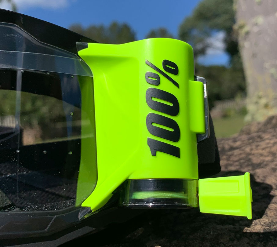 A bobina do Óculos motocross 100% Strata 2 Forecast com filme é puxada e automaticamente enrolada garantido visão clara em segundos, garantindo praticidade para sua pilotagem se manter no máximo de performance. Com sistema que impede que a sujeira ou a água fiquem entre o filme e a lente, impedindo riscos na lente ou atrapalhando a visão.