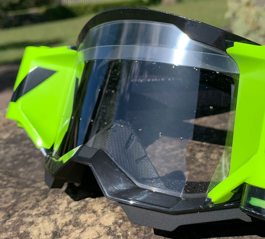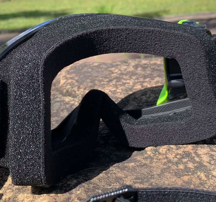 A primeira e mais próxima espuma junto à lente, conta com micro perfurações capazes de manter a lente refrigerada, impedindo embaçamentos e, as duas espumas próximas ao rosto, permitem que o ajuste, conforto e o posicionamento ao capacete e rosto sejam muito maiores, garantindo que a pele respire livremente e o suor ou umidade sejam absorvidos e liberados de forma eficiente e rápida.