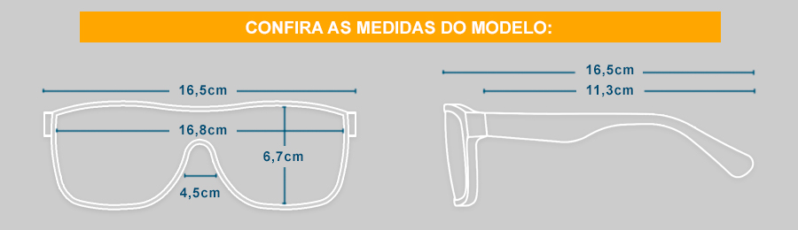 * A Largura da lente é superior ao da armação devido ao modelo ser com lente curva.
