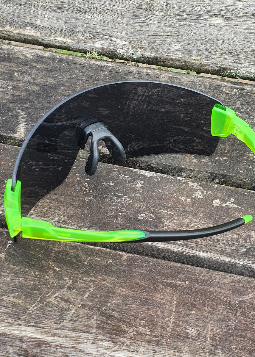 • Design sem armação - hastes e narizeira posicionadas diretamente na lente única, garantindo maior visibilidade e estilo mais aerodinâmico