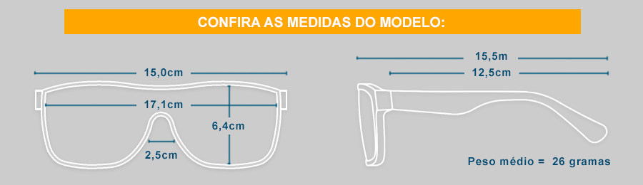 * A Largura da lente é superior ao da armação devido ao modelo ser com lente curva.