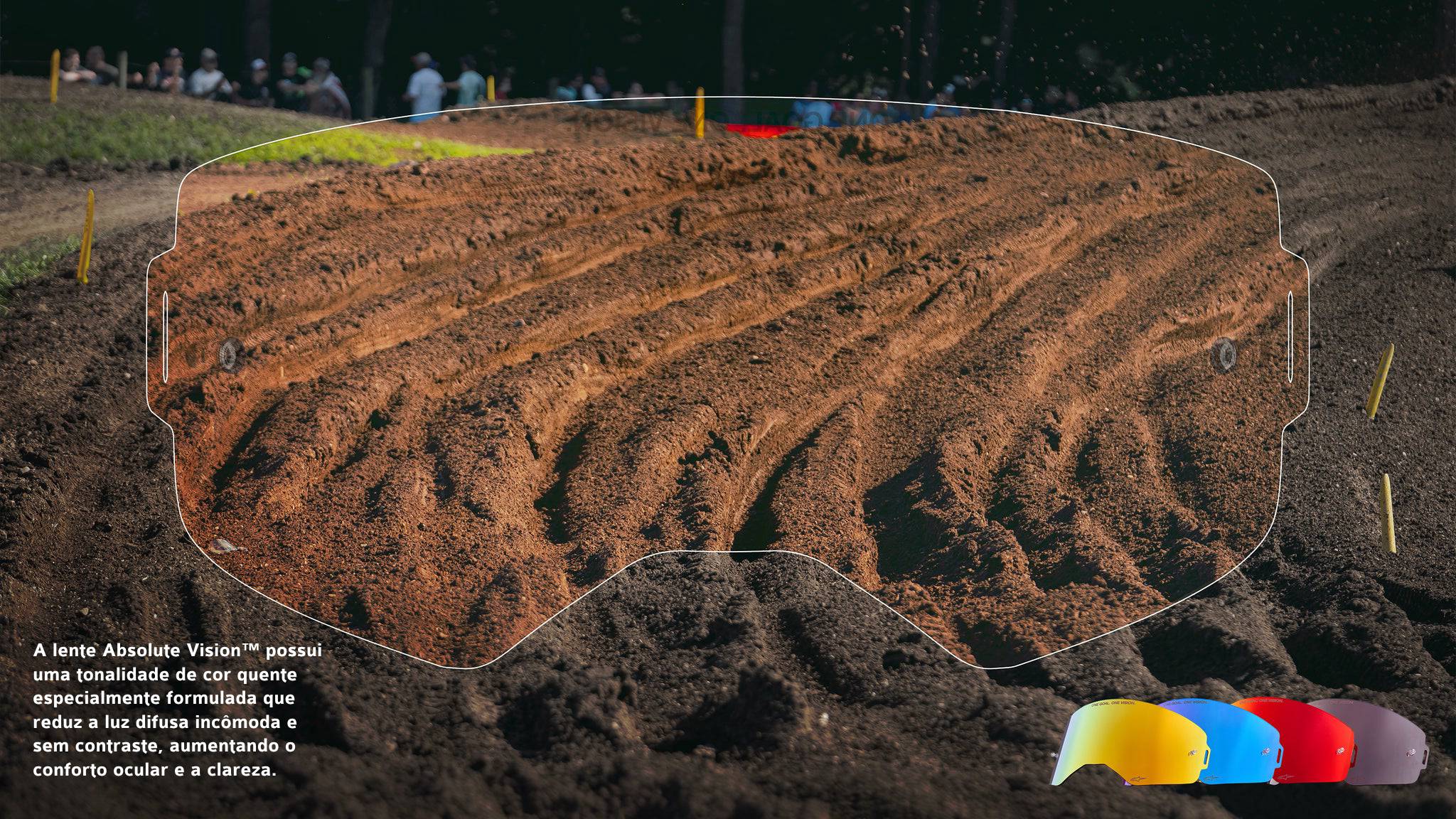 • Lentes Absolute Vision® - em policarbonato, moldada e injetada, garantindo uma visão nítida e sem distorções, com alta proteção contra os mais variados impactos