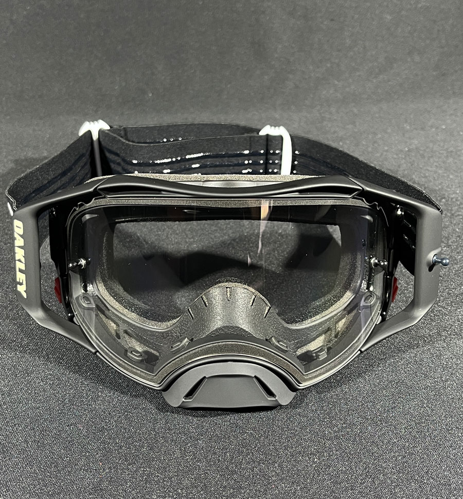 A construção da armação feita em poliuretano do Óculos Oakley Airbrake B1B Black White/Clear oferece flexibilidade, que possibilita um ajuste de médio para alto em relação ao seu tamanho frente ao capacete e rosto do piloto, garantindo também uma melhor visão periférica, além de maximizar o conforto durante toda a pilotagem com a durabilidade e a proteção muito maiores.