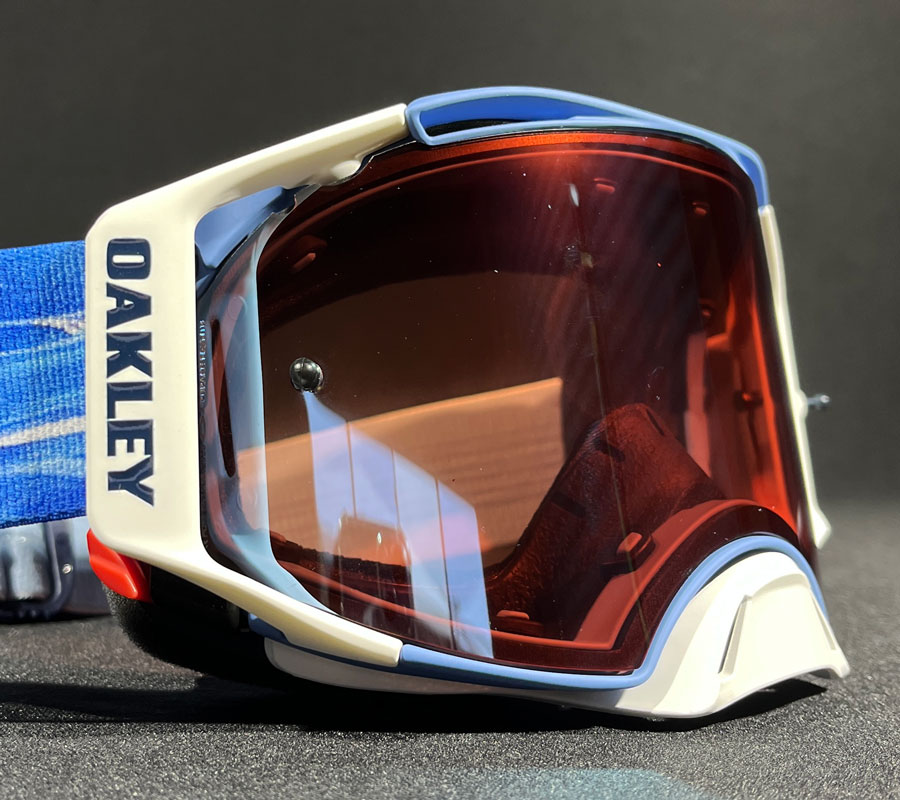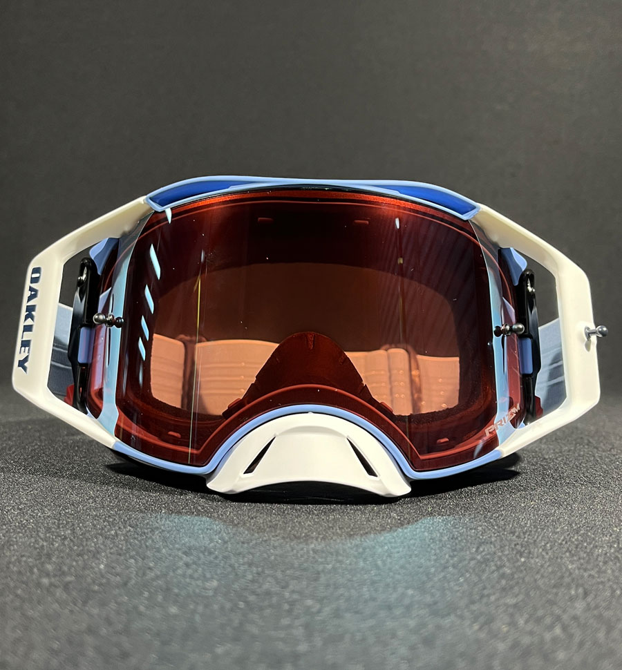 A construção da armação feita em poliuretano do Óculos Oakley Airbrake Chase Sexton Signature/Prizm Sapphire Iridium oferece flexibilidade, que possibilita um ajuste de médio para alto em relação ao seu tamanho frente ao capacete e rosto do piloto, garantindo também uma melhor visão periférica, além de maximizar o conforto durante toda a pilotagem com a durabilidade e a proteção muito maiores.