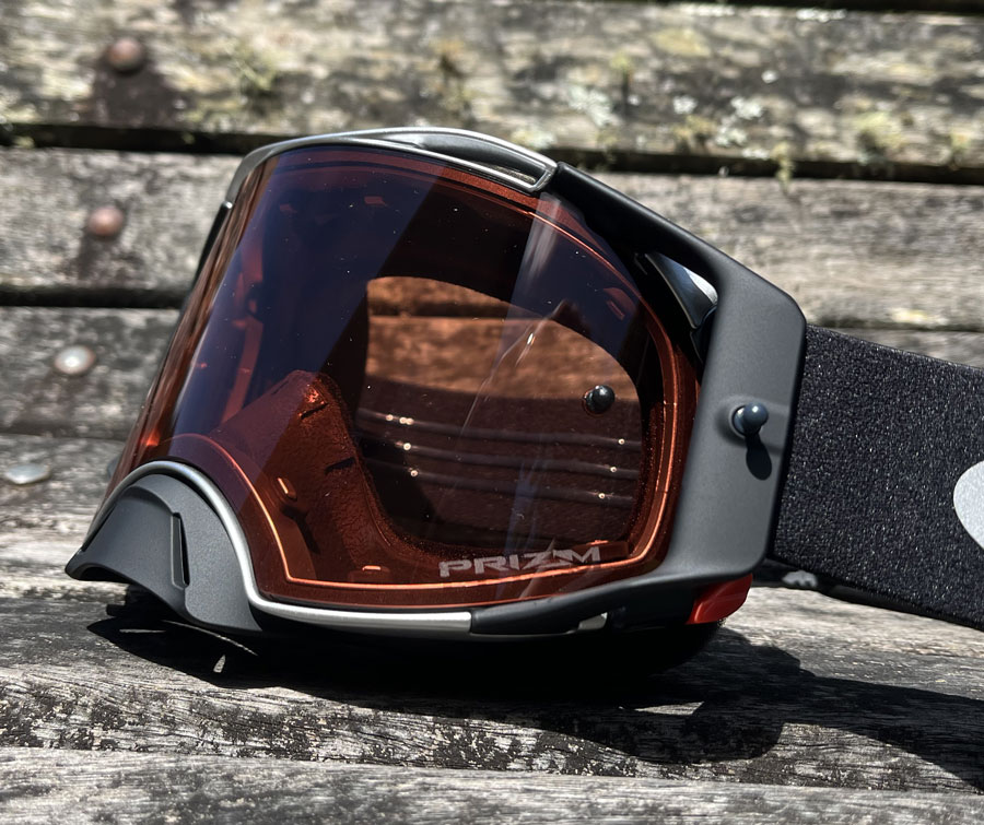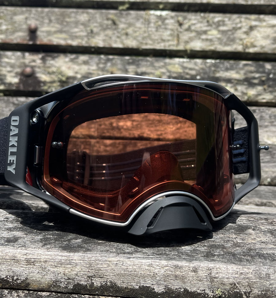 A construção da armação feita em poliuretano do Óculos Oakley Airbrake oferece flexibilidade, que possibilita um ajuste de médio para alto em relação ao seu tamanho frente ao capacete e rosto do piloto, garantindo também uma melhor visão periférica, além de maximizar o conforto durante toda a pilotagem com a durabilidade e a proteção muito maiores.