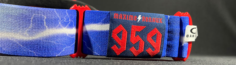 • 01 Óculos Oakley Airbrake Maxime Renaux Signature/Prizm Sapphire Iridium (Azul/Vermelho)
