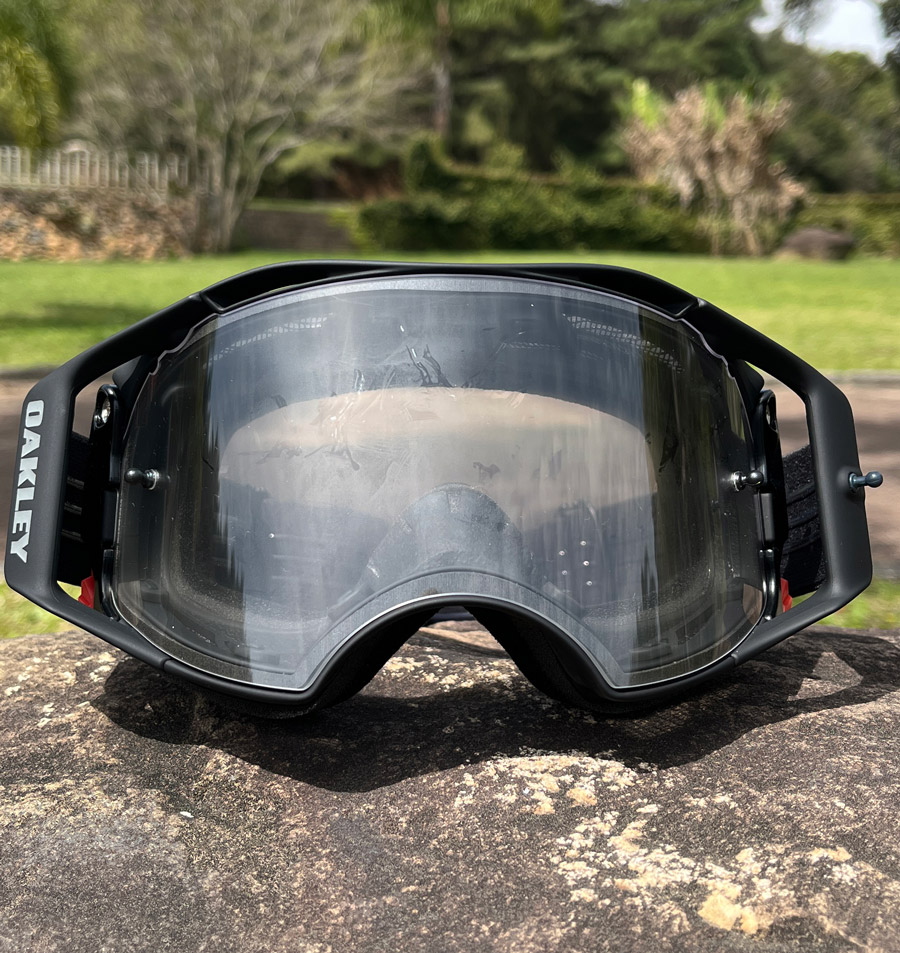Pilote pelas trilhas e pistas com o máximo em conforto, proteção, e estilo com o Óculos Oakley Airbrake MTB Black Gunmetal/Clear.