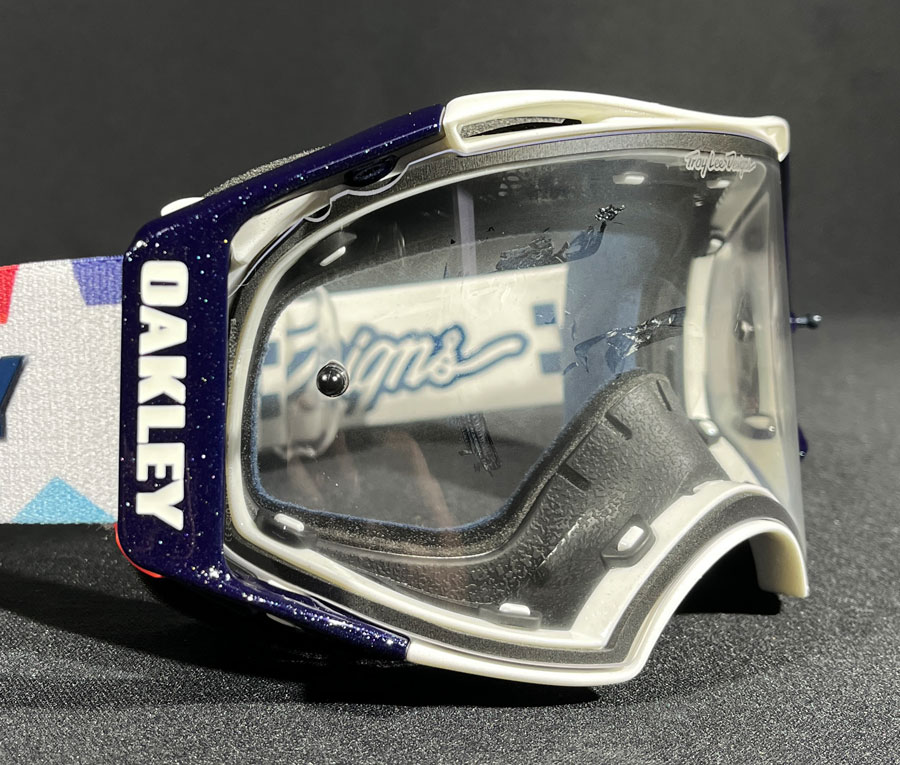 Pedale pelas trilhas e pistas com o máximo em conforto, proteção, e estilo com o Óculos Oakley Airbrake MTB Troy Lee Designs Ice White/Clear.