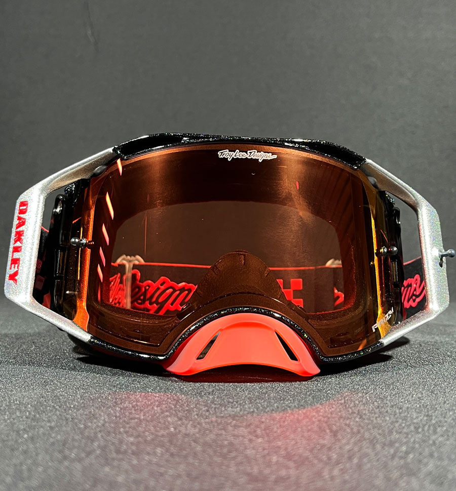 Pilote pelas trilhas e pistas com o máximo em conforto, proteção, e estilo com o Óculos Oakley Airbrake Troy Lee Designs Black Holo/Prizm Torch Iridium.