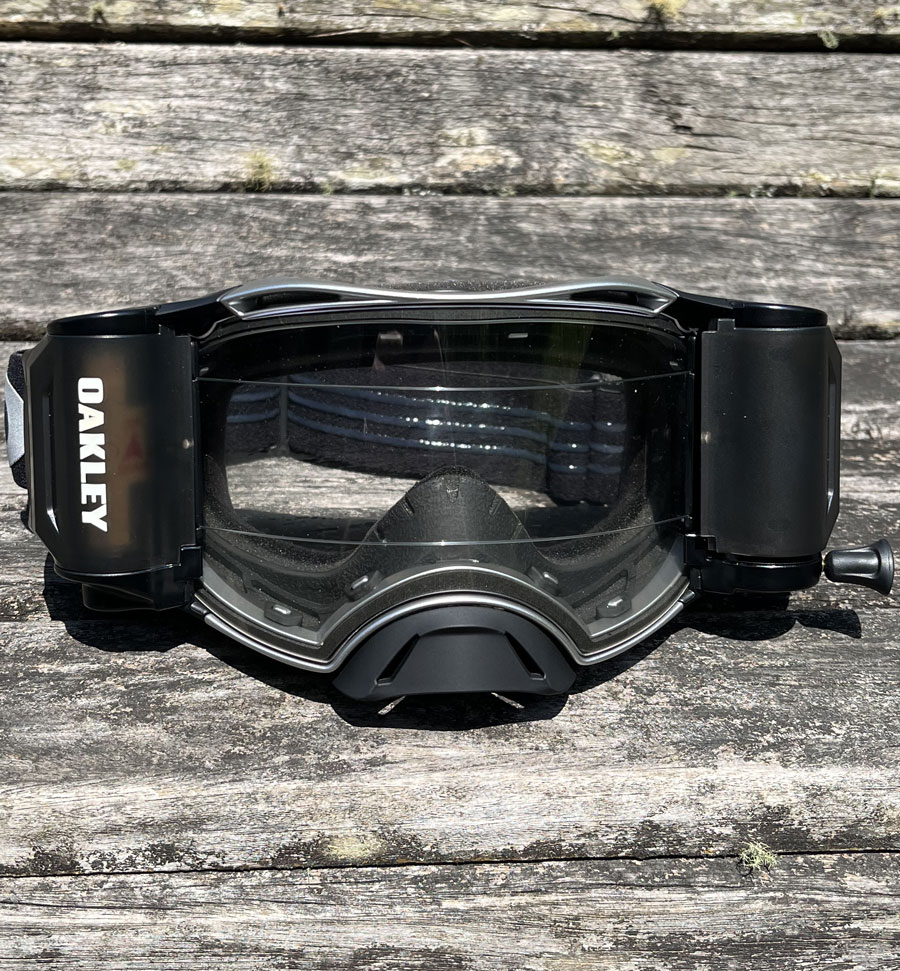 Pilote pelas trilhas e pistas com o máximo em conforto, proteção, e estilo com o Óculos Oakley Airbrake Tuff Blocks Roll-Off/Prizm Clear.