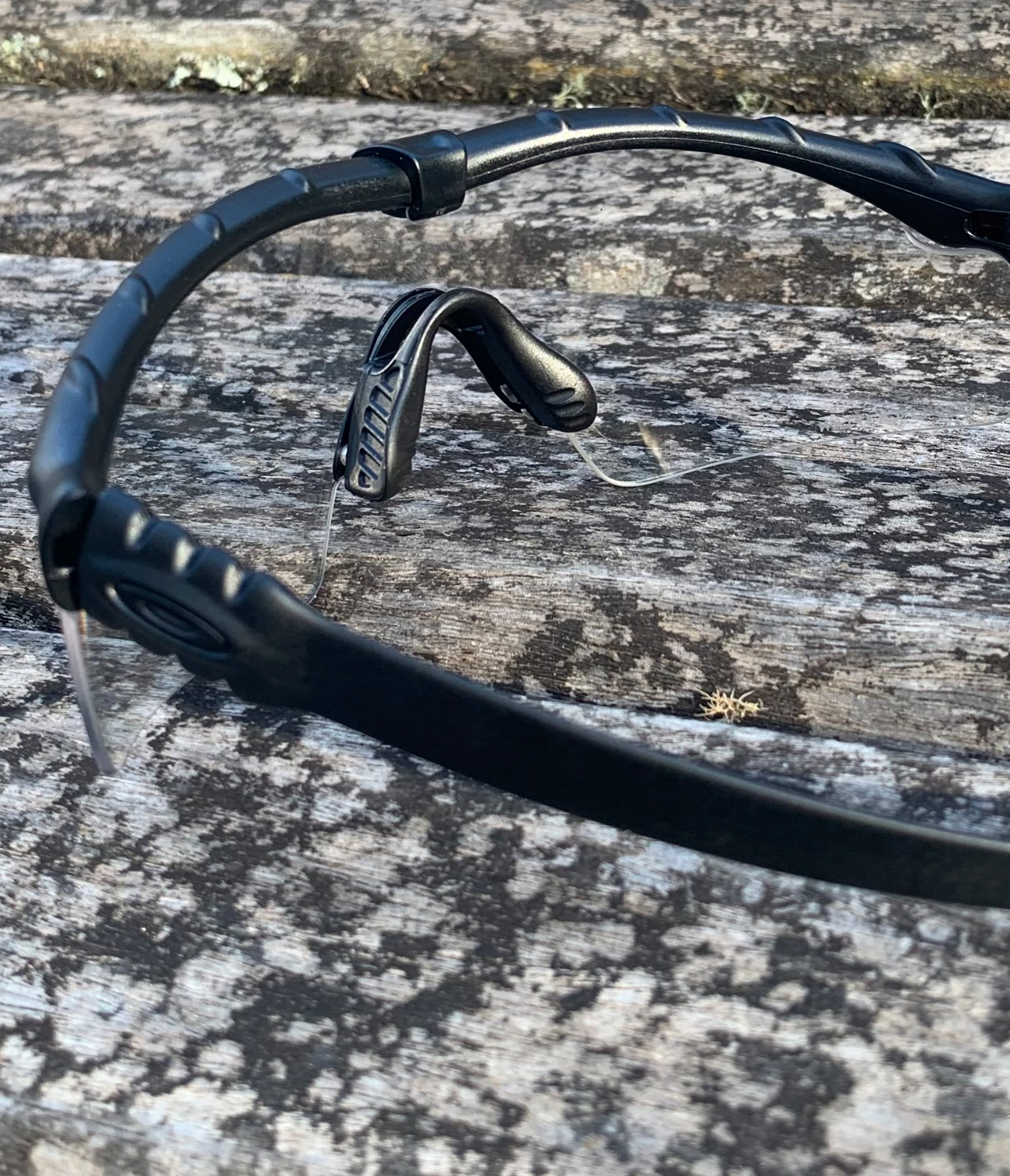 A ponta das hastes e nosepads (narizeiras) do Óculos Oakley Industrial M Frame 3.0 PPE conta com tecnologia Unobtainium®- muito mais macia e aderente junto ao nariz e parte posterior da cabeça, mesmo com uso por cima das cintas jugulares do capacete de ciclismo, mantendo a segurança nas trepidações mais elevadas e sob altas condições de umidade.