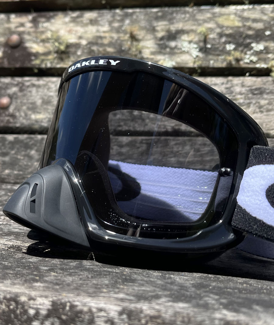 Óculos motocross Oakley O Frame 2.0 conta com lente com tratamento anti embaçante, que mantém a visão sempre limpa para que o piloto possa manter seu alto nível em suas provas e treinos.